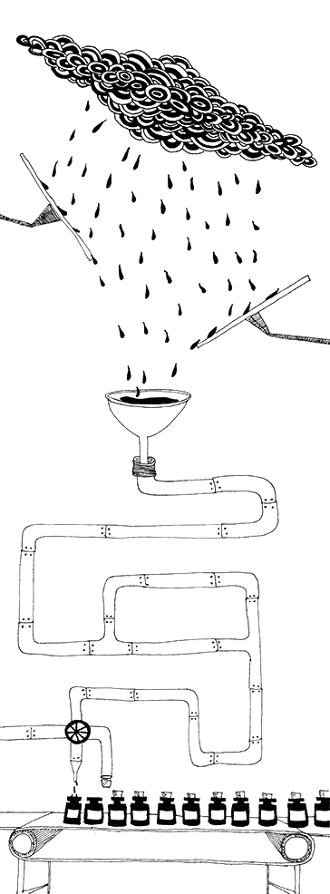 Dessin au stylo technique Rotring sur carnet moleskine Format : 41 x 13 cm Année : 2013