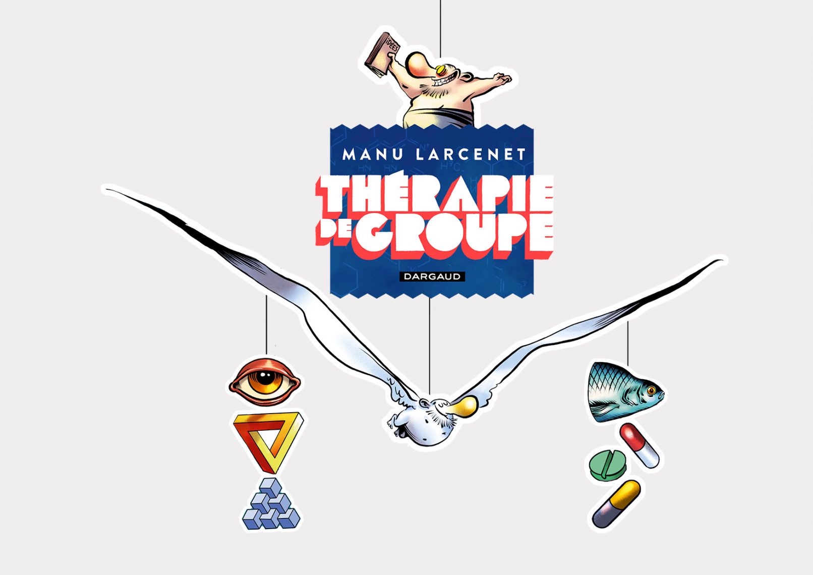 PLV, Mobile et affiche réalisés pour la sortie du Tome 2 de Thérapie de Groupe par Manu Larcenet aux éditions Dargaud